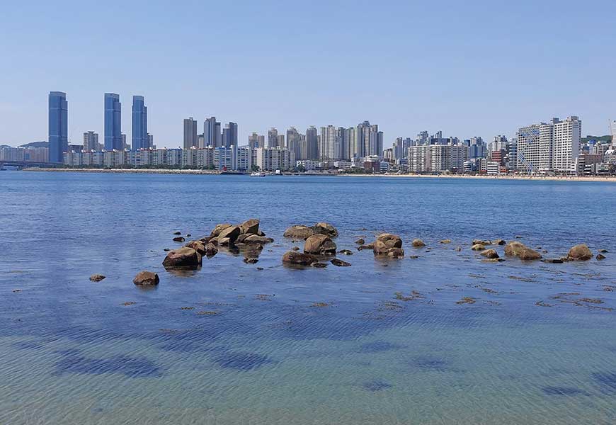 해변가에 앉아 바다와 도시의 조화를 느끼며 부산 여행의 마지막을 여유롭게 즐겼습니다.