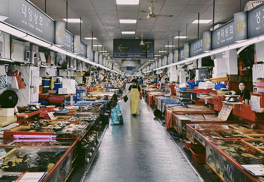 부산의 대표적인 전통 시장인 자갈치 시장도 빼놓을 수 없죠.