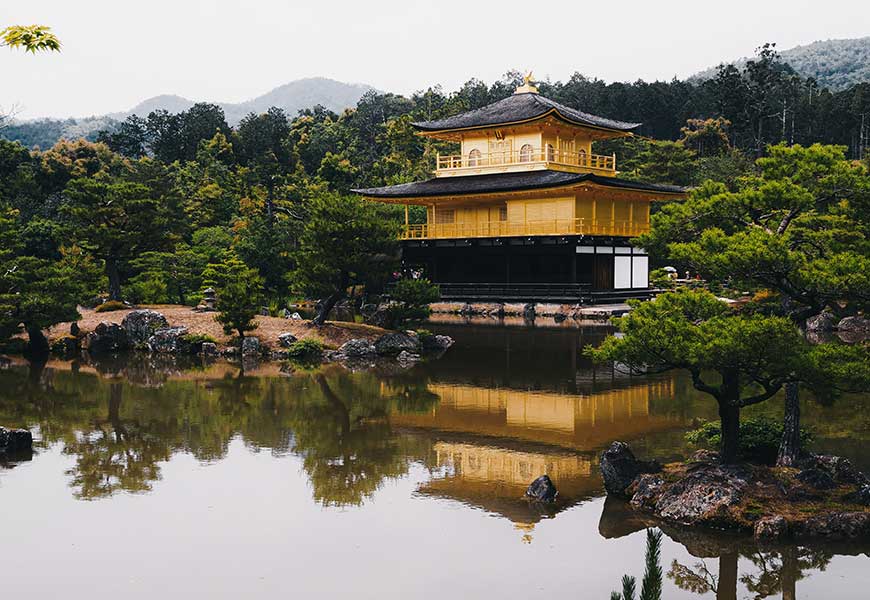 이어서 금각사로 이동했어요. 금박으로 덮인 사원이 연못에 비치는 모습이 정말 아름다웠어요.