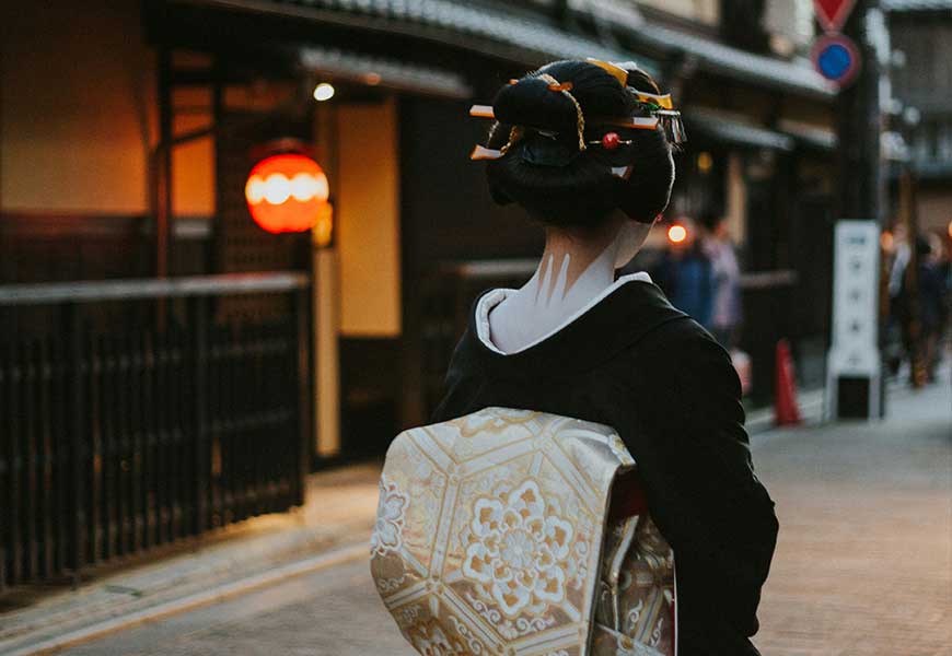 기온에서 전통적인 마이코(게이샤) 공연을 감상했어요.