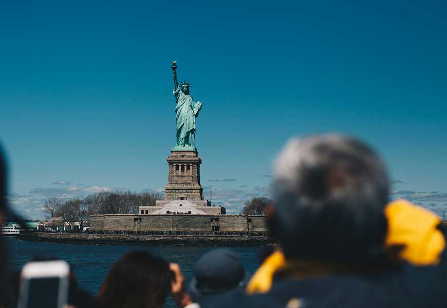 아침 일찍 뉴욕시에 도착해서 첫 번째로 방문한 곳은 세계적으로 유명한 자유의 여신상 앞 입니다.