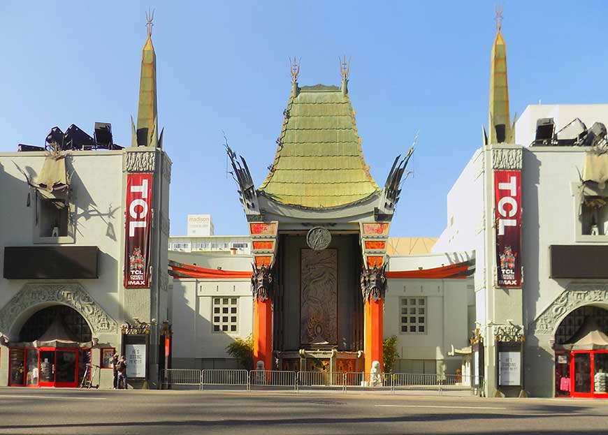 이곳은 할리우드에서 가장 유명한 극장 중 하나로, 외부 디자인이 아주 독특했어요.